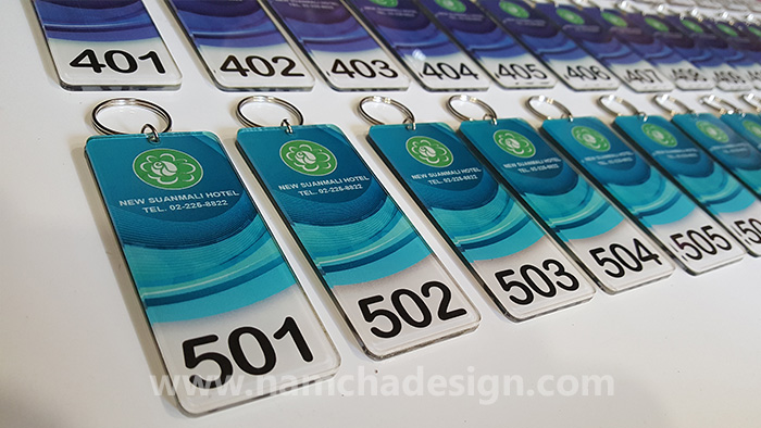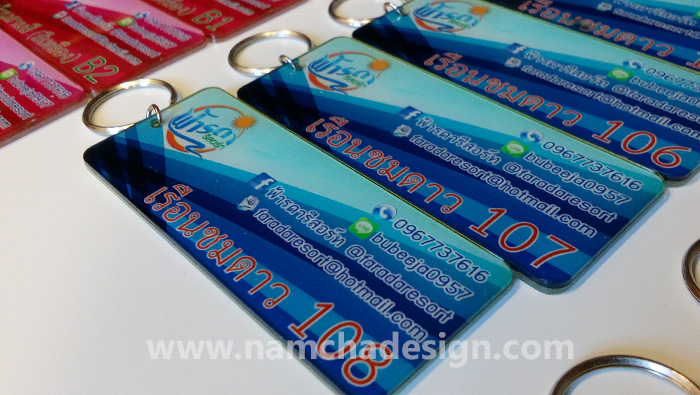รับผลิตพวงกุญแจอะคริลิค พวงกุญแจโรงแรม พวงกุญแจห้องพัก พวงกุญแจรีสอร์ท พวงกุญแจอาร์ทเม้นท์ พวงกุญแจบ้านจัดสรร พวงกุญแจบังกาโล พวงกุญแจหอพัก คีย์แท็กแม่เหล้ก keytag สำหรับห้องพักโรงแรม งานพิมพ์ระบบ UV คุณภาพสูง สีสด สวยงาม อายุการใช้งานยาวนานกว่างานสติกเกอร์ พวงกุญแจโดนน้ำได้ มีแบบให้เลือกมากมาย หรือลูกค้าสามารถออกแบบมาเองได้ ผลิตตามแบบไม่จำกัดสี ไม่จำกัดขนาด มีทั้งแบบงานพิมพ์ลงอะคริลิคแผ่นเดียว และแบบพิมพ์ประกบ 2 ด้าน หน้า-หลัง สั่งผลิตได้ไม่มีขั้นต่ำ